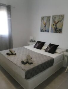Room amenities include 3 king size beds. Additionally, there is a fully equipped kitchen, 1 bathroom, 1 Wc, free Wi-Fi, a large smart TV and a parking area. The guests have the privilege of relaxing in the hot tub with an amazing sea view.